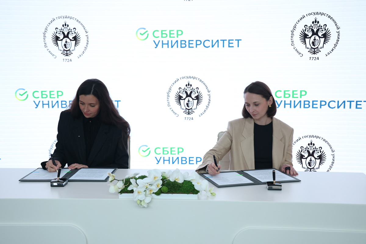Санкт-Петербургский государственный университет и СберУниверситет подписали соглашение о сотрудничестве в сфере образования и научно‑исследовательской деятельности. Подписи под документом на площадке Петербургского международного экономического форума поставили генеральный директор СберУниверситета Наталья Александровна Осипчук и первый проректор по стратегическому развитию и партнерству СПбГУ Анастасия Сергеевна Ярмош.